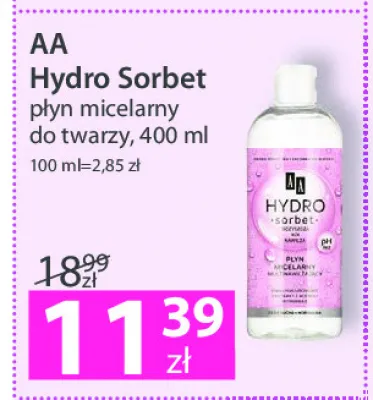 Przeglądaj podobne oferty promocyjne do Płyn micelarny multinawilżający kwas hialuronowy ekstrakt z aceroli i witamina e cera sucha, normalna Aa hydro sorbet!