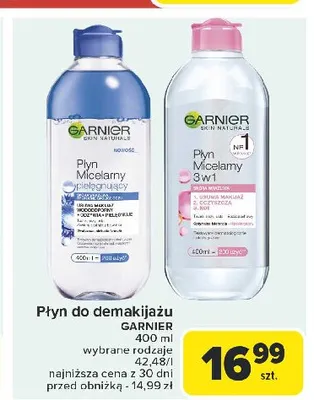Cena produktu różni się w zależności od wybranego sklepu. Niestety nie posiadamy danych o aktualnych promocjach, jednak wśród archiwalnych ofert Płyn micelarny pielęgnujący z wyciągiem z bławatka Garnier skin naturals kosztuje od 12,99 zł do 19,99 zł.