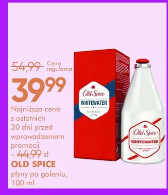 Cena produktu r贸偶ni si臋 w zale偶no艣ci od wybranego sklepu. Niestety nie posiadamy danych o aktualnych promocjach, jednak w艣r贸d archiwalnych ofert P艂yn po goleniu Old spice whitewater kosztuje od 29,99 z艂 do 39,99 z艂.