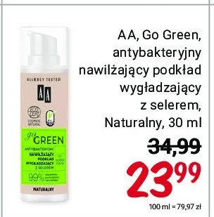 Cena produktu r贸偶ni si臋 w zale偶no艣ci od wybranego sklepu. Niestety nie posiadamy danych o aktualnych promocjach, jednak w艣r贸d archiwalnych ofert Podk艂ad antybakteryjny z selerem naturalny Aa go green kosztuje od 23,99 z艂.