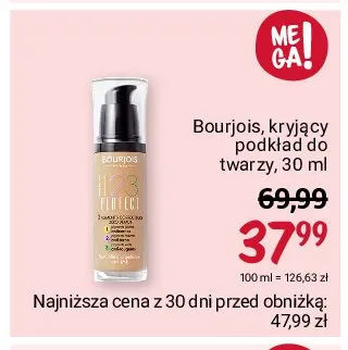 Cena produktu r贸偶ni si臋 w zale偶no艣ci od wybranego sklepu. Niestety nie posiadamy danych o aktualnych promocjach, jednak w艣r贸d archiwalnych ofert Podk艂ad Bourjois kosztuje od 33,99 z艂 do 39,99 z艂.