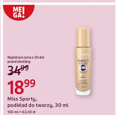 Cena produktu r贸偶ni si臋 w zale偶no艣ci od wybranego sklepu. Niestety nie posiadamy danych o aktualnych promocjach, jednak w艣r贸d archiwalnych ofert Podk艂ad do twarzy 100 ivory Miss sporty perfect to last 24h kosztuje od 18,99 z艂.