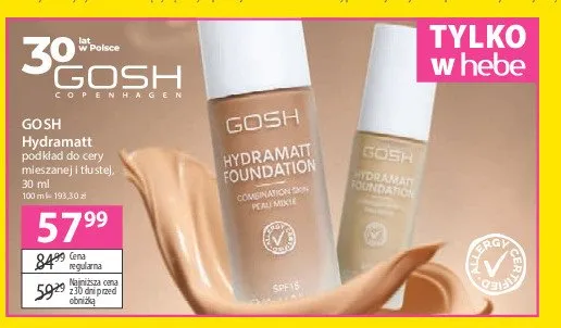 Przegl膮daj podobne oferty promocyjne do Podk艂ad do twarzy do sk贸ry mieszanej i t艂ustej 006 y Gosh hydramatt!