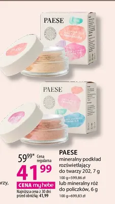 Cena produktu r贸偶ni si臋 w zale偶no艣ci od wybranego sklepu. Niestety nie posiadamy danych o aktualnych promocjach, jednak w艣r贸d archiwalnych ofert Podk艂ad mineralny 202 Paese kosztuje od 41,99 z艂.