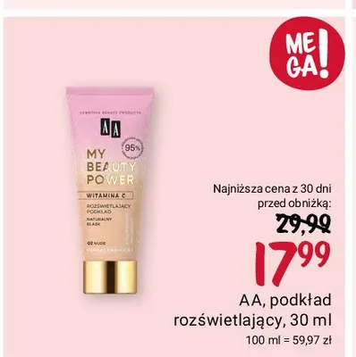 Ile kosztuje Podk艂ad roz艣wietlaj膮cy 02 nude Aa my beauty power?