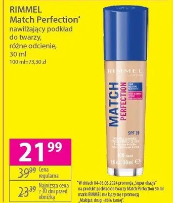 Ile kosztuje Podk艂ad spf 20 100 ivory Rimmel match perfection?