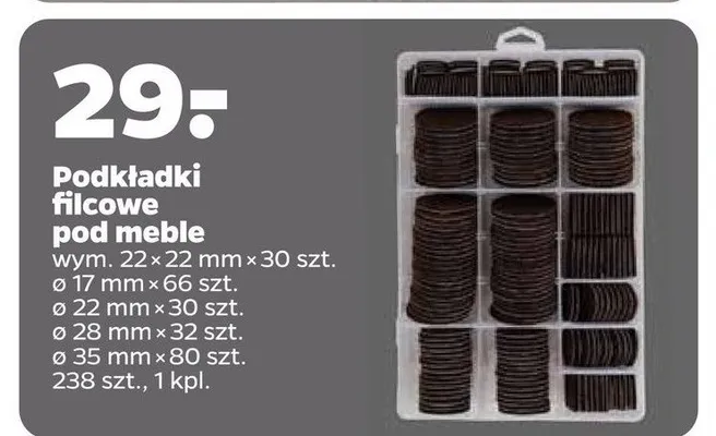 Cena produktu r贸偶ni si臋 w zale偶no艣ci od wybranego sklepu. Niestety nie posiadamy danych o aktualnych promocjach, jednak w艣r贸d archiwalnych ofert Podk艂adki filcowe pod meble kosztuje od 29 z艂.
