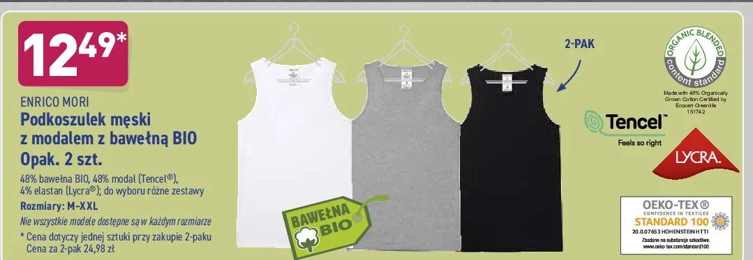 Ile kosztuje Podkoszulek m臋ski bawe艂na bio m-xxl Enrico mori?
