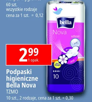 Cena produktu r贸偶ni si臋 w zale偶no艣ci od wybranego sklepu. Niestety nie posiadamy danych o aktualnych promocjach, jednak w艣r贸d archiwalnych ofert Podpaski Bella nova kosztuje od 1,79 z艂 do 3 z艂.