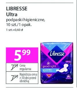 Cena produktu r贸偶ni si臋 w zale偶no艣ci od wybranego sklepu. Niestety nie posiadamy danych o aktualnych promocjach, jednak w艣r贸d archiwalnych ofert Podpaski goodnight ultra plus Libresse kosztuje od 5,99 z艂.