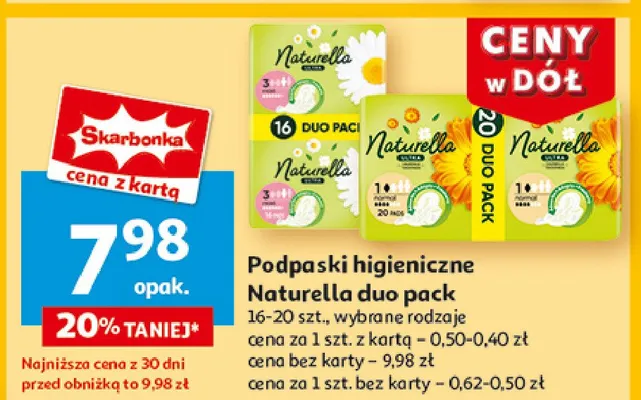 Ile kosztuje Podpaski higieniczne calendula normal Naturella ultra?