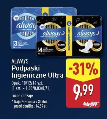 Ile kosztuje Podpaski higienicznie ze skrzyde艂kami Always ultra night?