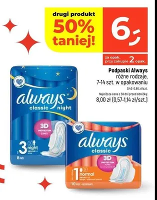 Przegl膮daj podobne oferty promocyjne do Podpaski night Always classic!