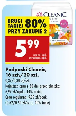 Cena produktu r贸偶ni si臋 w zale偶no艣ci od wybranego sklepu. Niestety nie posiadamy danych o aktualnych promocjach, jednak w艣r贸d archiwalnych ofert Podpaski soft Cleanic kosztuje od 5,99 z艂.