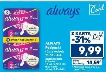Przegl膮daj podobne oferty promocyjne do Podpaski super ze skrzyde艂kami Always platinum!