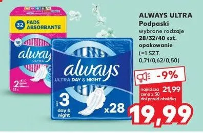 Ile kosztuje Podpaski super ze skrzyde艂kami Always ultra 100% protection?
