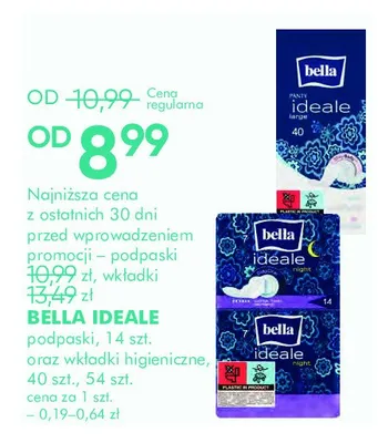 Cena produktu r贸偶ni si臋 w zale偶no艣ci od wybranego sklepu. Niestety nie posiadamy danych o aktualnych promocjach, jednak w艣r贸d archiwalnych ofert Podpaski ultra thin night Bella ideale kosztuje od 5,49 z艂 do 9,99 z艂.