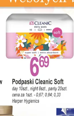 Cena produktu r贸偶ni si臋 w zale偶no艣ci od wybranego sklepu. Niestety nie posiadamy danych o aktualnych promocjach, jednak w艣r贸d archiwalnych ofert Podpaski z organicznej bawe艂ny Cleanic kosztuje od 11,99 z艂 do 14,99 z艂.