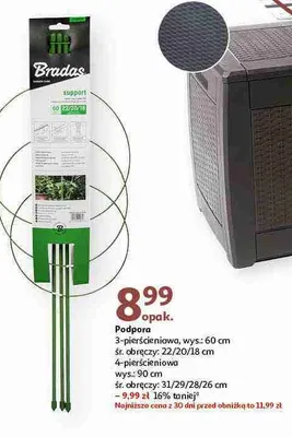 Cena produktu r贸偶ni si臋 w zale偶no艣ci od wybranego sklepu. Niestety nie posiadamy danych o aktualnych promocjach, jednak w艣r贸d archiwalnych ofert Podpora do ro艣lin 3-pier艣cieniowa 60 cm Bradas kosztuje od 8,99 z艂.
