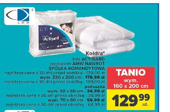 Cena produktu r贸偶ni si臋 w zale偶no艣ci od wybranego sklepu. Produkt Poduszka actigard 70 x 80 cm Amw mo偶esz kupi膰 w promocji ju偶 od 43,09 z艂 do 60 z艂. Najta艅sza oferta, jak膮 mamy w naszej bazie jest z sieci Selgros. Poduszka actigard 70 x 80 cm Amw kosztuje aktualnie 43,09 z艂. Zobacz ofert臋