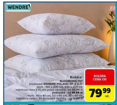 Zastanawiasz si臋, gdzie kupi膰 i ile kosztuje produkt Poduszka bloomenslyst 40 x 40 cm Wendre? Regularnie sprawdzamy, czy jest promocja na ten produkt w Biedronka, Lidl, Kaufland, Auchan, Netto, Makro i innych sklepach. Aktualnie posiadamy 1 ofert臋 promocyjn膮 na ten produkt. Ceny zaczynaj膮 si臋 od 14,99z艂!