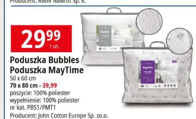 Cena produktu r贸偶ni si臋 w zale偶no艣ci od wybranego sklepu. Produkt Poduszka bubbles 70 x 80 cm John cotton mo偶esz kupi膰 w promocji ju偶 od 60 z艂. Najta艅sza oferta, jak膮 mamy w naszej bazie jest z sieci Jysk. Poduszka bubbles 70 x 80 cm John cotton kosztuje aktualnie 60 z艂. Zobacz ofert臋