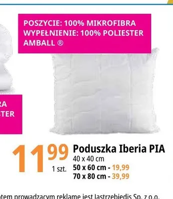 Cena produktu r贸偶ni si臋 w zale偶no艣ci od wybranego sklepu. Niestety nie posiadamy danych o aktualnych promocjach, jednak w艣r贸d archiwalnych ofert Poduszka iberia 40 x 40 cm Amw kosztuje od 5,99 z艂 do 11,99 z艂.
