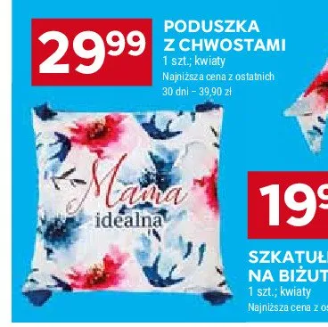 Cena produktu r贸偶ni si臋 w zale偶no艣ci od wybranego sklepu. Produkt Poduszka kwiaty 45 x 45 cm mo偶esz kupi膰 w promocji ju偶 od 5,99 z艂 do 29,99 z艂. Najta艅sza oferta, jak膮 mamy w naszej bazie jest z sieci Selgros. Poduszka kwiaty 45 x 45 cm kosztuje aktualnie 5,99 z艂. Zobacz ofert臋