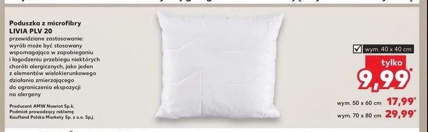 Cena produktu r贸偶ni si臋 w zale偶no艣ci od wybranego sklepu. Produkt Poduszka livia 40 x 40 cm Amw mo偶esz kupi膰 w promocji ju偶 od 14,64 z艂 do 24,48 z艂. Najta艅sza oferta, jak膮 mamy w naszej bazie jest z sieci Selgros. Poduszka livia 40 x 40 cm Amw kosztuje aktualnie 14,64 z艂. Zobacz ofert臋