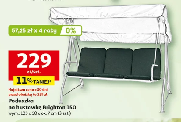 Cena produktu r贸偶ni si臋 w zale偶no艣ci od wybranego sklepu. Produkt Poduszka na hu艣tawk臋 brighton mo偶esz kupi膰 w promocji ju偶 od 229 z艂. Najta艅sza oferta, jak膮 mamy w naszej bazie jest z sieci Auchan. Poduszka na hu艣tawk臋 brighton kosztuje aktualnie 229 z艂. Zobacz ofert臋