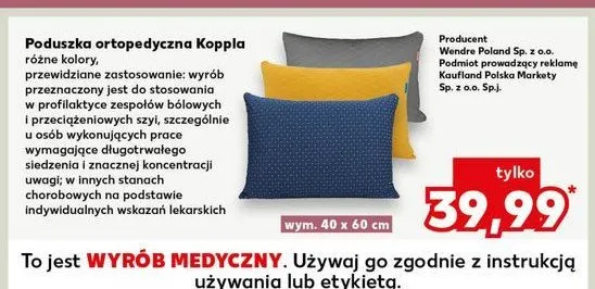Przegl膮daj podobne oferty promocyjne do Poduszka ortopedyczna koppia 40 x 60 cm Wendre!