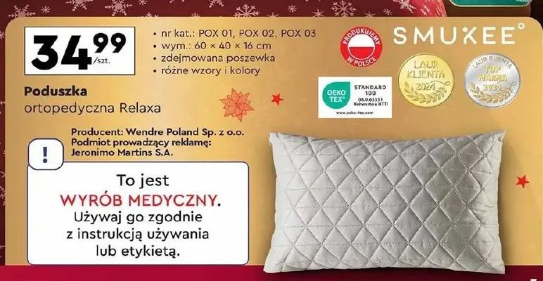 Zastanawiasz si臋, gdzie kupi膰 i ile kosztuje produkt Poduszka ortopedyczna relaxa 60 x 40 x 16 cm Smukee? Regularnie sprawdzamy, czy jest promocja na ten produkt w Biedronka, Lidl, Kaufland, Auchan, Netto, Makro i innych sklepach. Aktualnie posiadamy 1 ofert臋 promocyjn膮 na ten produkt. Ceny zaczynaj膮 si臋 od 49,99z艂!
