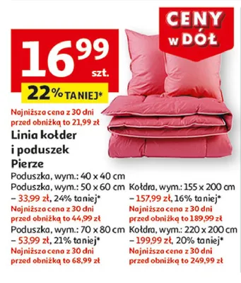 Zastanawiasz si臋, gdzie kupi膰 i ile kosztuje produkt Poduszka pierze 50 x 60 cm? Regularnie sprawdzamy, czy jest promocja na ten produkt w Biedronka, Lidl, Kaufland, Auchan, Netto, Makro i innych sklepach. Aktualnie posiadamy 7 ofert promocyjnych na ten produkt. Ceny zaczynaj膮 si臋 od 43,09z艂!