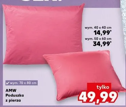 Cena produktu r贸偶ni si臋 w zale偶no艣ci od wybranego sklepu. Produkt Poduszka z pierza 40 x 40 cm Amw mo偶esz kupi膰 w promocji ju偶 od 4,99 z艂 do 32,9 z艂. Najta艅sza oferta, jak膮 mamy w naszej bazie jest z sieci Biedronka. Poduszka z pierza 40 x 40 cm Amw kosztuje aktualnie 4,99 z艂. Zobacz ofert臋