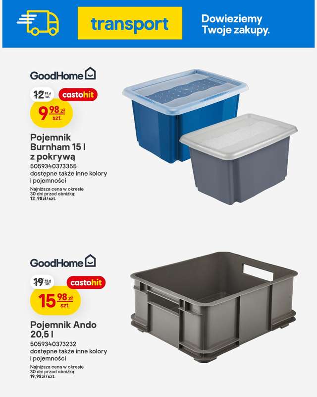 Nie wiesz gdzie kupić produkt Pojemnik ażur z pokrywą 11 l w promocji? Aktualnie produkt Pojemnik ażur z pokrywą 11 l znajduje się w atrakcyjnej cenie w sklepach Castorama. Oprócz tego produkt można kupić w innych sklepach, jednak aktulanie nie posiadamy informacji o promocjach w nich.