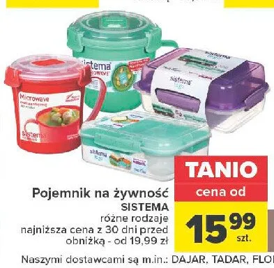 Cena produktu różni się w zależności od wybranego sklepu. Niestety nie posiadamy danych o aktualnych promocjach, jednak wśród archiwalnych ofert Pojemnik do kuchenki mikrofalowej okrągły duży Sistema kosztuje od 15,99 zł do 19,99 zł.
