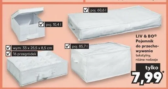 Cena produktu r贸偶ni si臋 w zale偶no艣ci od wybranego sklepu. Niestety nie posiadamy danych o aktualnych promocjach, jednak w艣r贸d archiwalnych ofert Pojemnik do przechowywania 16 przegr贸dek 33 x 25.5 x 8.5 cm Liv & bo kosztuje od 7,99 z艂.