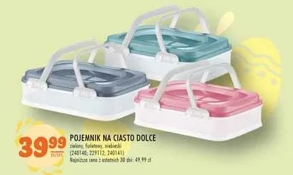 Cena produktu r贸偶ni si臋 w zale偶no艣ci od wybranego sklepu. Niestety nie posiadamy danych o aktualnych promocjach, jednak w艣r贸d archiwalnych ofert Pojemnik na ciasto dolce 1-poziomowy niebieski Domotti kosztuje od 39,99 z艂.