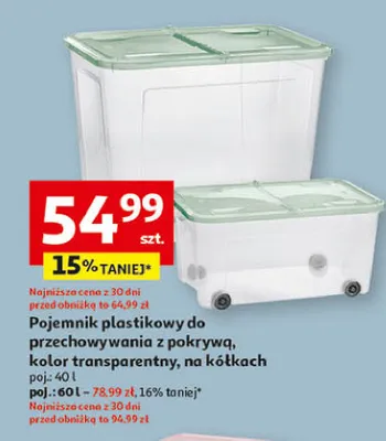 Cena produktu r贸偶ni si臋 w zale偶no艣ci od wybranego sklepu. Niestety nie posiadamy danych o aktualnych promocjach, jednak w艣r贸d archiwalnych ofert Pojemnik na k贸艂kach 40 l kosztuje od 54,99 z艂.