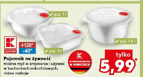 Przeglądaj podobne oferty promocyjne do Pojemnik na żywność orkągły 1 l K-classic!