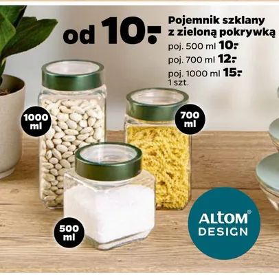 Przegl膮daj podobne oferty promocyjne do Pojemnik szklany z zielon膮 pokrywk膮 1 l Altom design!