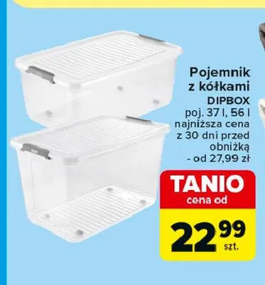 Cena produktu r贸偶ni si臋 w zale偶no艣ci od wybranego sklepu. Niestety nie posiadamy danych o aktualnych promocjach, jednak w艣r贸d archiwalnych ofert Pojemnik z k贸艂kami 56 l kosztuje od 22,99 z艂.
