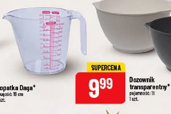 Cena produktu r贸偶ni si臋 w zale偶no艣ci od wybranego sklepu. Niestety nie posiadamy danych o aktualnych promocjach, jednak w艣r贸d archiwalnych ofert Pojemnik z miark膮 1 l kosztuje od 9,99 z艂.