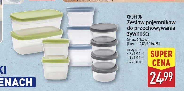 Cena produktu r贸偶ni si臋 w zale偶no艣ci od wybranego sklepu. Niestety nie posiadamy danych o aktualnych promocjach, jednak w艣r贸d archiwalnych ofert Pojemniki 1.9 l Crofton kosztuje od 24,99 z艂.