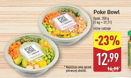 Cena produktu r贸偶ni si臋 w zale偶no艣ci od wybranego sklepu. Niestety nie posiadamy danych o aktualnych promocjach, jednak w艣r贸d archiwalnych ofert Poke bowl z 艂ososiem kosztuje od 11,39 z艂 do 17,99 z艂.