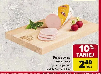 Cena produktu r贸偶ni si臋 w zale偶no艣ci od wybranego sklepu. Niestety nie posiadamy danych o aktualnych promocjach, jednak w艣r贸d archiwalnych ofert Pol臋dwica miodowa Indykpol kosztuje od 19,9 z艂 do 24,9 z艂.