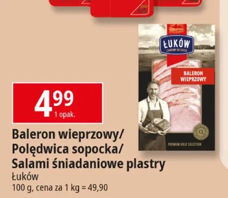 Cena produktu r贸偶ni si臋 w zale偶no艣ci od wybranego sklepu. Niestety nie posiadamy danych o aktualnych promocjach, jednak w艣r贸d archiwalnych ofert Poledwica sopocka 艁uk贸w kosztuje od 4,69 z艂 do 4,99 z艂.