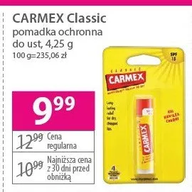 Cena produktu r贸偶ni si臋 w zale偶no艣ci od wybranego sklepu. Niestety nie posiadamy danych o aktualnych promocjach, jednak w艣r贸d archiwalnych ofert Pomadka do ust classic Carmex kosztuje od 5,99 z艂 do 9,99 z艂.
