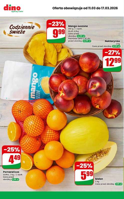 Cena produktu r贸偶ni si臋 w zale偶no艣ci od wybranego sklepu. Produkt Pomara艅cze siatka mo偶esz kupi膰 w promocji ju偶 od 4,49 z艂 do 4,99 z艂. Najta艅sza oferta, jak膮 mamy w naszej bazie jest z sieci Dino. Pomara艅cze siatka kosztuje aktualnie 4,49 z艂. Zobacz ofert臋
