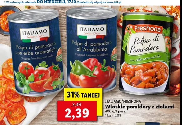 Cena produktu r贸偶ni si臋 w zale偶no艣ci od wybranego sklepu. Niestety nie posiadamy danych o aktualnych promocjach, jednak w艣r贸d archiwalnych ofert Pomidory arrabbiata Italiamo kosztuje od 2,39 z艂.